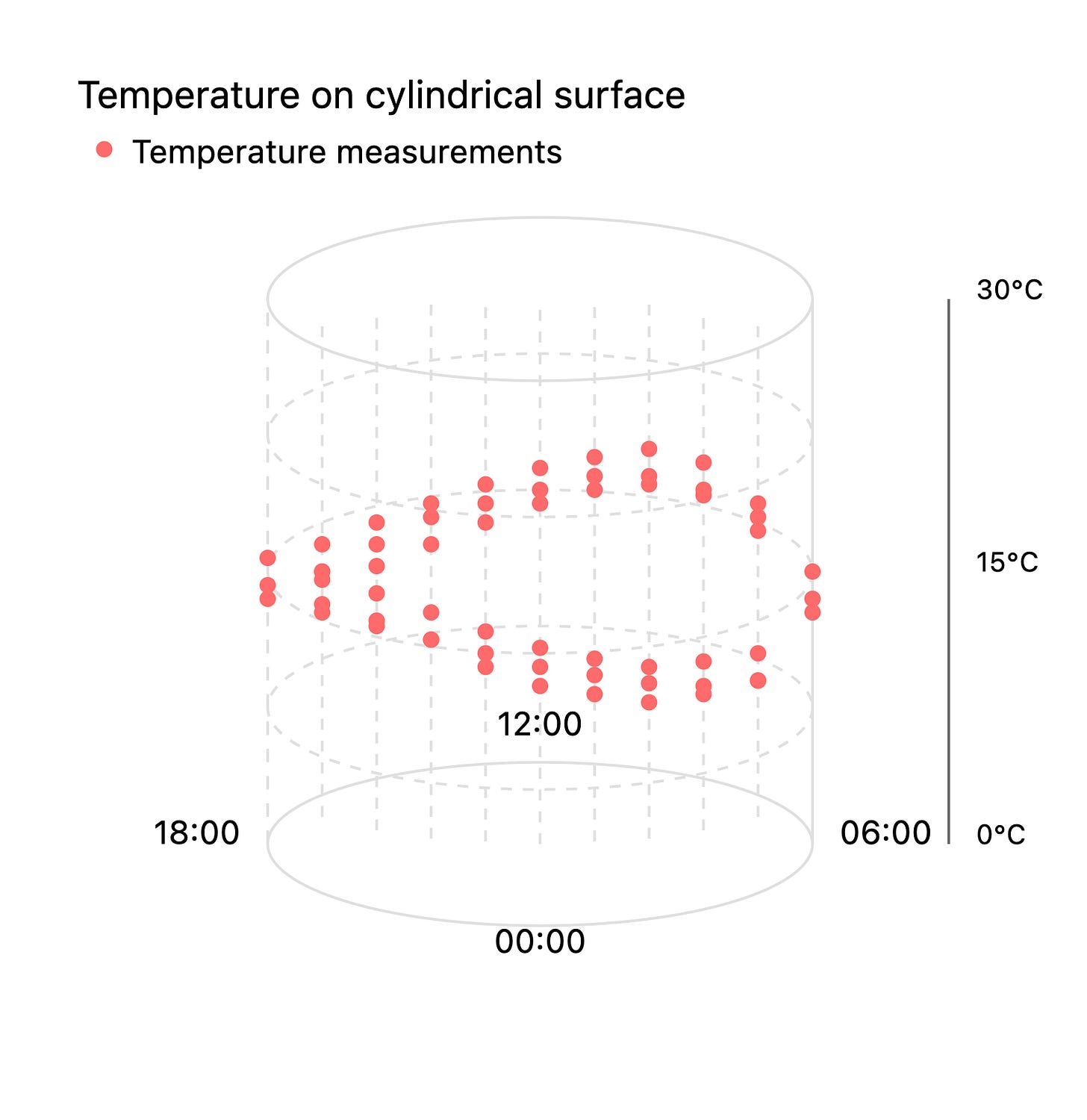 But not all data sets with two values map to a cartesian plane. What if you want to plot the temperature by time of day for February in Chicago. You collect a lot of data points (time_of_day, temperature) and you could plot them on a plane using like minutes_after_midnight as the x-coordinate. But in a very real sense 11:59pm is as close to 12:01 am as 12:01am is to 12:03am and you don’t get that in a Cartesian plane. So you might imagine looping the x-axis around into a circle. Which would give you this: